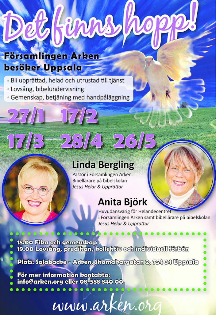 Kan betalas via Swish-nummer: 123 056 90 46 eller till församligen Arkens Bankgiro: 549-7748. Meddela vid inbetalning “Helandedag Uppsala”.
